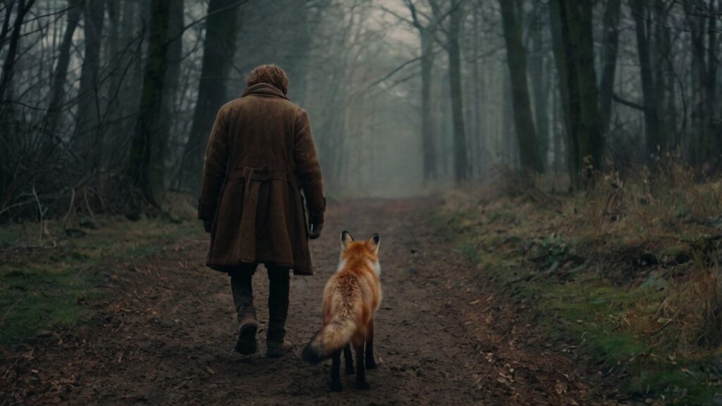 Feeling hopeless, the young man set off on his journey again. As he walked, sighing with regret, the fox appeared once more.